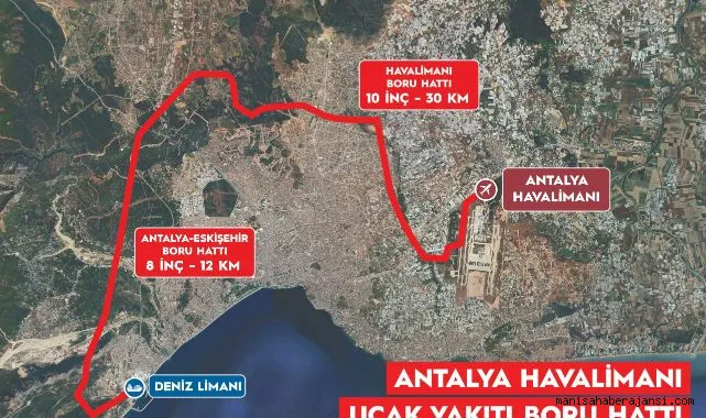 Ulaştırma ve Altyapı Bakanı Abdulkadir Uraloğlu, Antalya Havalimanı'nın Kapasite Artırımına Yönelik İlave Yatırımlar kapsamında, havalimanında bulunan uçak yakıtı depolarının bağlantıları tamamlanarak havalimanına hizmet verecek 40 kilometre uzunluğundaki boru hattının devreye alındığını, bu kapsamda Deniz Limanı-Antalya Havalimanı arasında taşıma yapan yıllık yaklaşık 60 bin tankerin karayolu trafiğinden çekilmesinin sağlanarak, çevre kirliliğinin önüne geçileceğini bildirdi.