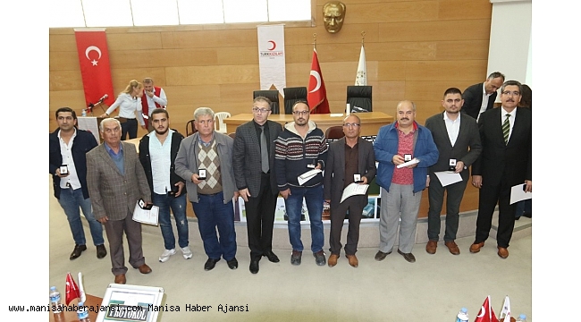 Türk Kızılayı Manisa Şubesi, Akhisar'da en çok kan bağışında bulunan vatandaşları plaket, altın, gümüş ve bronz madalya ile onurlandırdı.'14 Haziran Dünya Gönüllü Kan...