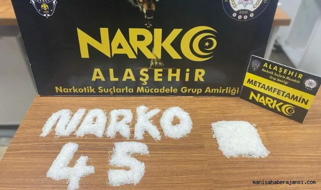 Manisa Narkotik Suçlarla Mücadele Şube Müdürlüğü Alaşehir NSM Büro Amirliği ekipleri, uyuşturucu madde ticareti yapan ve nakleden şahıslara yönelik yaptıkları çalışmalarda büyük bir başarı elde etti. Gaziantep'ten Alaşehir'e uyuşturucu sevkiyatı yapacağı değerlendirilen bir aracı durduran ekipler, araçta yaptıkları aramalarda 595 gram metamfetamin maddesi ele geçirdi.