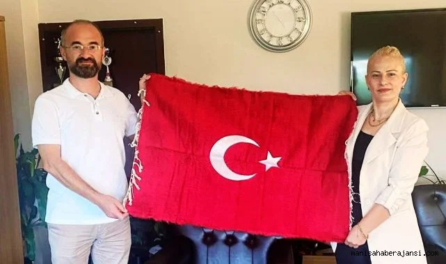 Aynur Akkoyun Başhekim Uz.Dr. Hamza Bambalı’ya Türk Bayrağı hediye etti ve hatıra fotoğrafı çekimi ile ziyaret sona erdi.