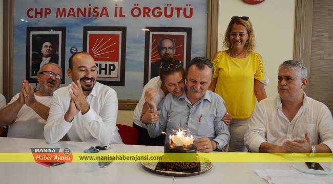 CHP Manisa İl Başkanı Semin Balaban’a basın toplantısının ardından partililer il başkanlığı binasında sürpriz doğum günü düzenledi. 58 yaşına giren CHP’li Balaban, sürpriz doğum günü pastasının mumlarını eşi Serap Balaban ile birlikte söndürdü. CÜNEYT HASÇELİK