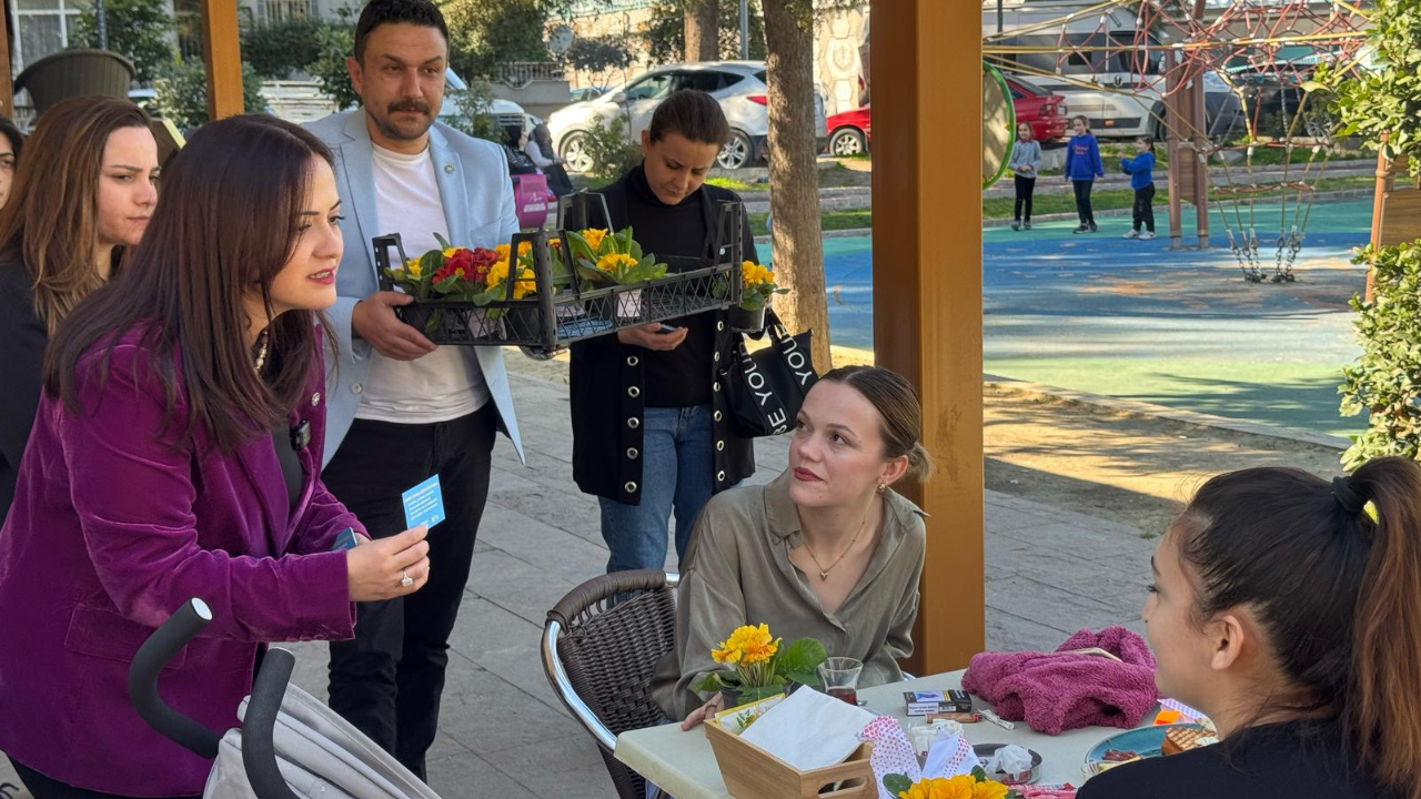 Servis duraklarında, parklarda kadınlarla bir araya gelen ve "güçlü kadın" vurgusu yapan İYİ Partili Aytaç, etkinlik kapsamında kadınlara çiçek ve bilgilendirme kartları dağıtarak günün anlam ve önemine dikkat çekti.