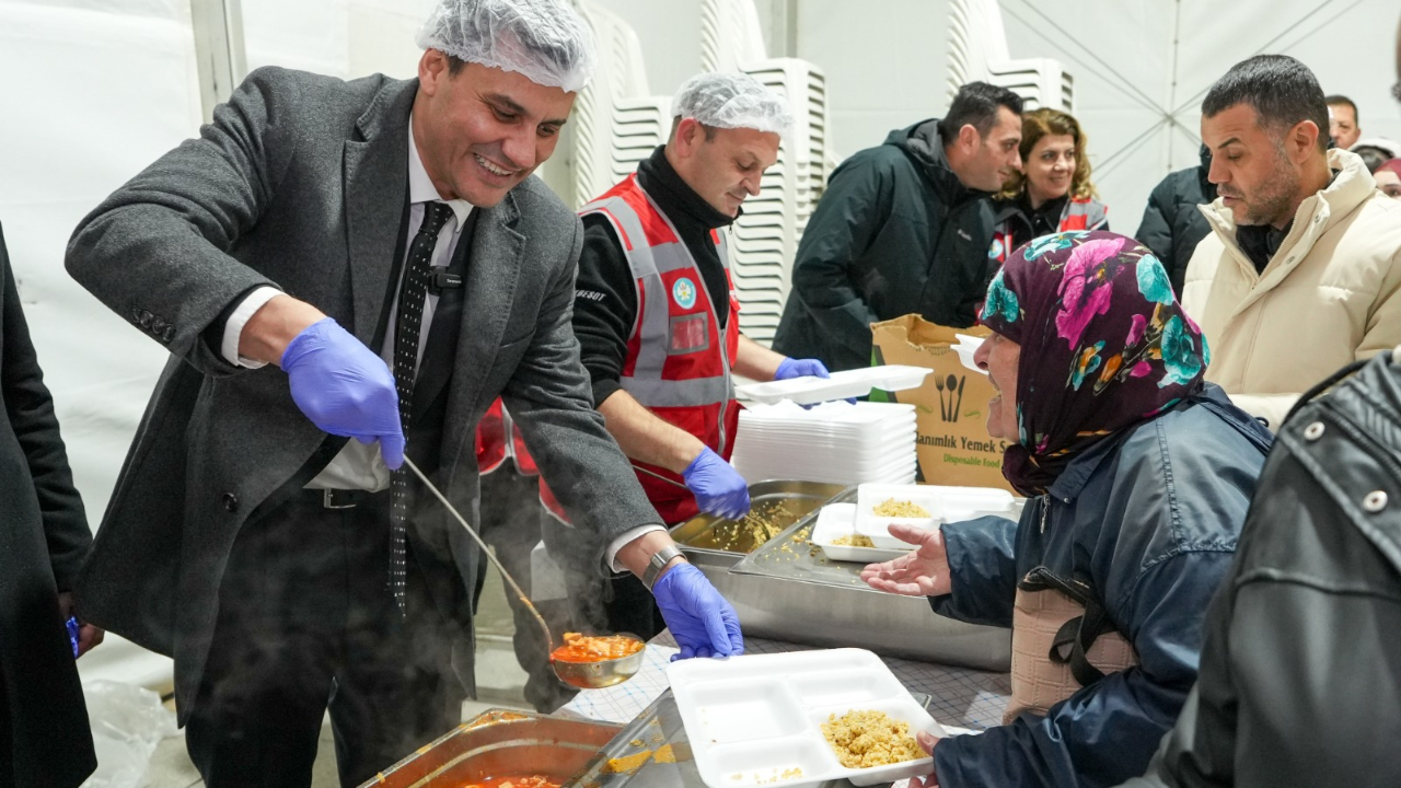 Manisa Büyükşehir Belediye Başkanı Mimar Ferdi Zeyrek, Ramazan ayının üçüncü gününde Cumhuriyet Meydanı’nda düzenlenen iftar programında vatandaşlarla buluştu. Yoğun katılımın olduğu etkinlikte Başkan Zeyrek, kepçeyi eline alarak yemek dağıttı ve Manisalılarla aynı sofrada iftar yaptı.