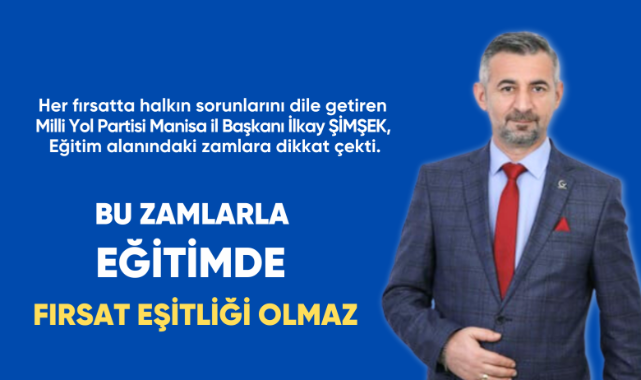 Milli Yol Partisi Manisa İl Başkanı İlkay Şimşek kamu işçisine yüzde 45, asgari ücretliye yüzde 34, emekliye yüzde 25 zam veren iktidarın özel okullara yaptığı yüzde 65’lik artışın kabul edilemez olduğunu belirterek, “Bu hangi vicdana sığar, nerede kaldı sizin eğitimde fırsat eşitliğiniz” dedi.