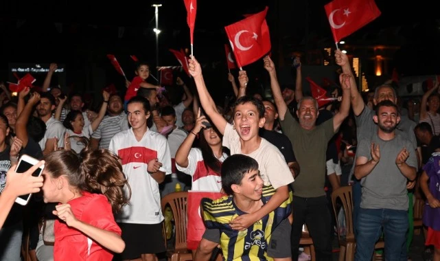 A Milli takımımız zorlu rakipleri karşısında mücadele ederken, Manisalılar da milli takıma dev ekranların önünde destek verdi. Manisa Büyükşehir Belediye Başkanı Mimar Ferdi Zeyrek de milli maç coşkusunu Manisalılarla omuz omuza yaşadı. Atılan gollerle büyük coşku yaşayan yurttaşlar, turnuva boyunca milli heyecanı doyasıya yaşadı.