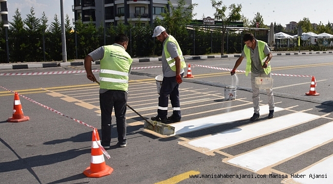 Manisa Büyükşehir Belediyesi, yaptığı hizmetler ve yatırımlar ile vatandaşların refah düzeyini yükseltmeye, aldığı güvenlik önlemleri ile vatandaşların mağduriyetlerini önleme çalışmalarını tüm hızıyla sürdürüyor. Manisa Büyükşehir Belediyesi Ulaşım Dairesi Başkanlığı ekipleri tarafından yapılan çalışma ile merkezde bulunan ilk ve ortaöğretim okullarının önlerindeki yaya geçitleri boyanarak yenilendi. Yapılan çalışma ile okul önlerindeki yaya geçitlerinin sürücüler tarafından görünürlüğü arttırılarak öğrencilerin trafik güvenliği sağlandı. Yapılan çalışmayı yerinde inceleyen Manisa Büyükşehir Belediyesi Ulaşım Hizmetleri Dairesi Başkanlığı Trafik Hizmetleri Şube Müdürü Bülent Ceylan, öğrencilerin okul önlerinde karşıdan karşıya daha güvenli şekilde geçmelerini sağlamak üzere çalışma yaptıklarını söyledi.