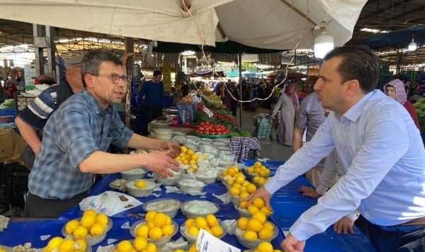 CHP’li Başevirgen pazarda yaşlı bir teyze ile de sohbet etti. Emekli bile olmayan yaşlı teyze “Kendim bir şey alamıyorum hep eş dost yardım ediyor. Param yok. Muz 20 lira, kiraz 15 lira olmuş nasıl alayım? Eskiden 20 lirayla çanta dolardı, şimdi 250 liraya bir şey alamıyoruz.” Dedi.