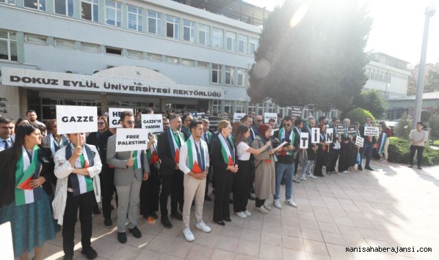 İsrail’in Gazze şehri başta olmak üzere Filistin halkına yönelik uyguladığı saldırıların 28’inci gününde, Türkiye’nin dört bir yanında İsrail’e yönelik tepkiler yükselmeye devam ediyor. Dokuz Eylül Üniversitesi (DEÜ) öğrencileri, İsrail’in Filistin topraklarında sürdürdüğü ölümcül saldırıları, düzenledikleri basın açıklamasıyla kınadı. DEÜ çatısı altında öğrenim gören 40 farklı ülkeden öğrencinin katıldığı basın açıklamasında, Filistin halkıyla dayanışma çağrısı yapılarak, Gazze’deki kuşatmaya ve insanlık dramına dikkat çekildi. DEÜ’nün Alsancak’taki Rektörlük binası önünde gerçekleşen basın açıklamasında konuşan DEÜ Rektörü Prof. Dr. Nükhet Hotar; “Filistinli öğrencilerimizin öncülüğünde Üniversitemiz bünyesindeki yaklaşık 40 ülkeden öğrencimizle gerçekleştirilen ve artık bir terör devleti haline gelmiş olan İsrail’i en şiddetli şekilde kınıyor, işlediği insanlık suçunu ve sivil katliamları durdurmasını en hızlı şekilde talep ediyoruz. Uyuyan dünyayı uyanmaya davet ediyoruz. DEÜ ailesi olarak Filistin halkının yanında olduğumuzu bir kere daha buradan ifade etmek istiyoruz. Bugün Filistin’de yaşanan bu katliama bugün dur demeyenler, kendileri yaşadığı sorunlarda bu suskun dünyaya suskun deme hakkı bulamayacaklar. Dünyanın beşten büyük olduğunu kabul etmeyenler, yarın böyle bir durumla karşılaştığında gidecekleri bir yer belki de bulamayacaklar. Bunun bilincini bir kere daha vurgulayarak İsrail’in yaptığı katliamlara dur diyoruz” dedi.