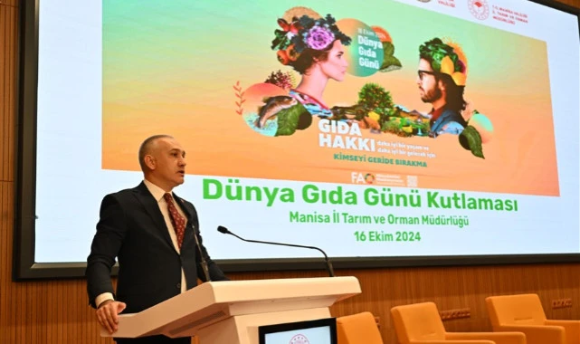 16 Ekim Dünya Gıda Günü kapsamında, Manisa İl Tarım ve Orman Müdürlüğü 100. Yıl Konferans Salonu'nda "Gıda Hakkı Kimseyi Geride Bırakma" etkinliği düzenlendi. Etkinliğe Vali Vahdettin Özkan, Şehzadeler Kaymakamı Fatih Genel, Manisa Büyükşehir Belediyesi Genel Sekreteri Burak Deste, İl Tarım ve Orman Müdürü Metin Öztürk, kurum müdürleri, sivil toplum kuruluşu temsilcileri ve öğrenciler katıldı.