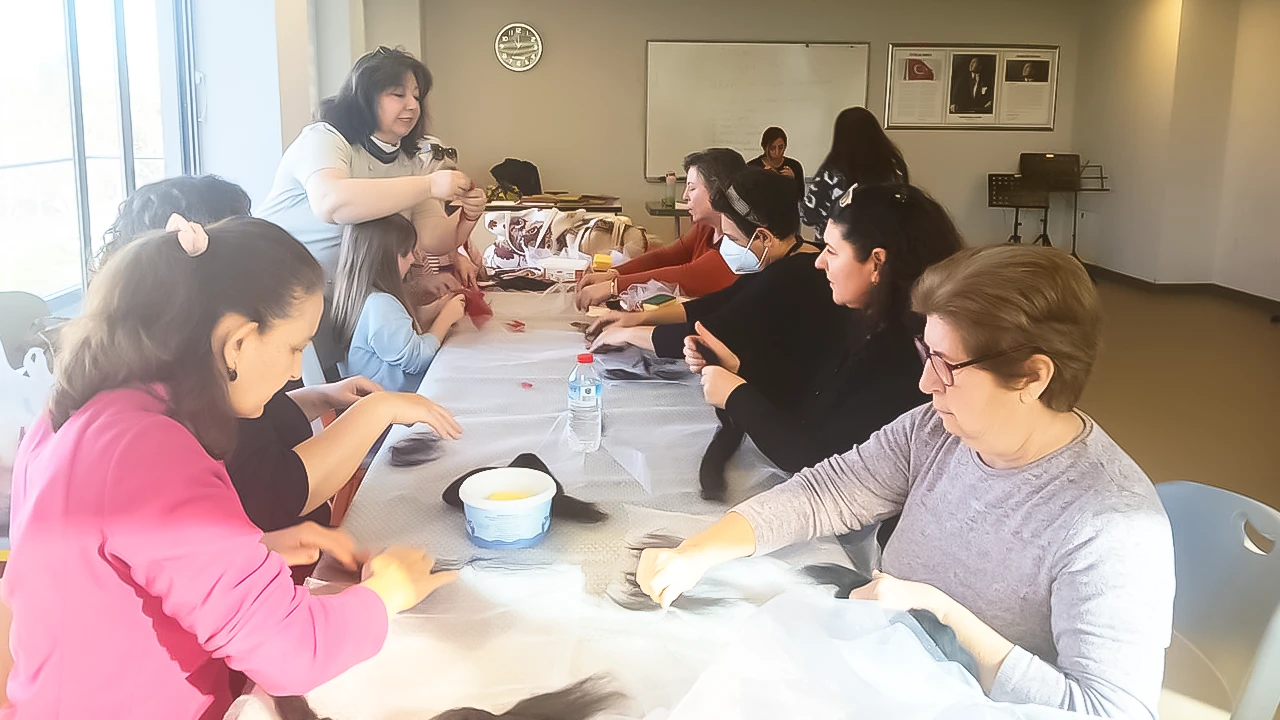 İzmir Büyükşehir Belediyesi Meslek Fabrikası El Sanatları Eğitmeni Şule Baysal tarafından verilen eğitimler, Perşembe ve Cuma günleri 10.00-13.30 saatleri arasında devam edecek. 28 Mart’a kadar sürecek kursa, hobilerini mesleğe dönüştürmek isteyen 21 kadın kursiyer katılıyor.