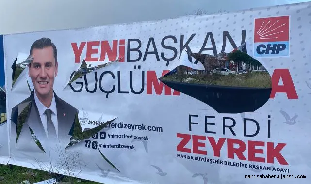 2024 yerel seçimlerine sayılı günler kala, siyasi arenada hareketlilik de artarken, Manisa’da afiş ve pankartlara yapılan çirkin saldırı vatandaşların tepkisine neden oldu. Cumhuriyet Halk Partisi (CHP) Manisa Büyükşehir Belediye Başkan Adayı Mimar Ferdi Zeyrek’in kazanması durumunda Manisaların hizmetine sunacağı projelerin yer aldığı afiş ve pankartlara, kimliği belirsiz kişiler tarafından saldırılar gerçekleştirildi.