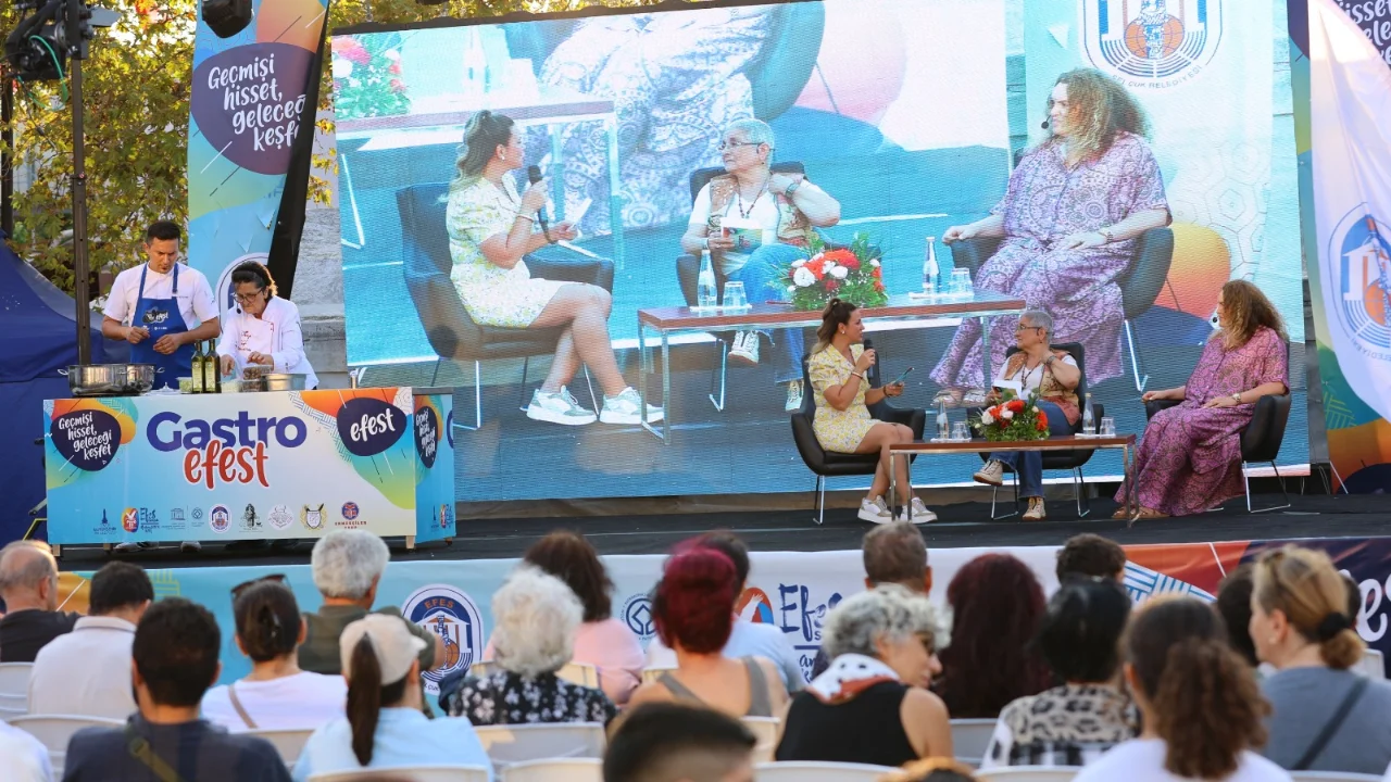 Efes Selçuk Belediyesi’nin “Geçmişi Hisset, Geleceği Keşfet” sloganıyla, bu yıl 55.’sini düzenlediği EFEST 2025’te Efes Selçuk tarımsal zenginliğine ve mutfak kültürüne geniş yer verildi. Efes Selçuk’un yerel tohumlarından elde edilen ürünler ve kooperatif ürünleri ile “Gastro EFEST” başlığıyla mutfak dünyasının ünlü şefleri birbirinden lezzetli yemekler yaparken, söyleşilerle gastronomi ve yemek kültürü konuşuldu.