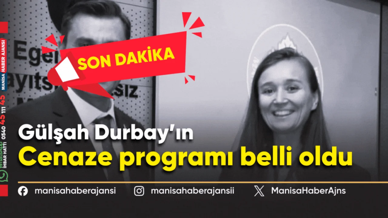 Cenaze namazının, 13.40’ta Cumhuriyet Meydanı’nda kılınacağı bildirildi. Meydanda kılınacak cenaze namazına Manisa protokolünün, çevre il ve ilçelerden gelecek belediye başkanları ile çok sayıda vatandaşın katılması bekleniyor. Cenaze namazının ardından Gülşah Durbay’ın naaşı, Koldere Mezarlığı’na 15.45 'te uğurlanacak. Koldere'ye gidecek otobüsler Şehitler İlköğretim Okulu önünden kalkacaktır.