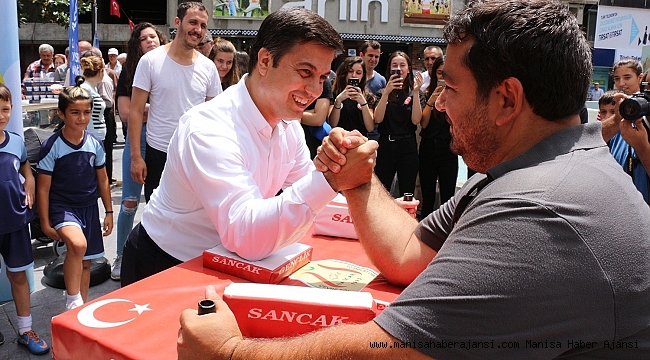 Manisa 15 Temmuz Demokrasi Meydanı'nda çocukların, gençlerin, sporcuların ve vatandaşların katılımıyla hem Spor Teşkilatının 80’inci kuruluş yıldönümü kutlandı hemde Manisa Gençlik Hizmetleri ve Spor İl Müdürlüğünün Yaz Spor Okullarının açılışı gerçekleştirildi. Sporcuların gösterileri ve bilek güreşleriyle renklenen programda vatandaşlara da pilav ayran ikram edildi. Gerçekleştirdikleri etkinlikle ilgili bir açıklama yapan Manisa Gençlik Hizmetleri ve İl Spor Müdürü Yunus Öztürk, “Spor Genel Müdürlüğümüzün 80’inci kuruluş yıldönümü münasebetiyle ve il spor merkezlerimizin açılışını da bilerek aynı güne denk getirdik. Şehrin en işlek meydanında hem halkımıza müdürlüğümüzün faaliyetlerini, yaz okullarını hemde müdürlüğümüzün imkanlarını tanıtalım istedik. Burada yaklaşık 200-300 sporcu genç, velilerimiz ve antrenörlerimizle beraber bu hizmeti vereceğiz. İl spor merkezlerimiz şuana kadar binin üzerinde başvuru aldı. Manisa merkezdeki hedefimiz 2 bin 500 ama tüm Manisa genelinde, 17 ilçemizde bu uygulama var. Tahminen 9-10 bin civarında bir çocuğumuz kayıt yaptıracak. 10 bin çocuğumuza Manisa, il spor merkezlerimizde 17 branşta 47 antrenörümüzle hizmet vermeyi düşünüyoruz” dedi. Çeşitli aktivitelerle devam etti.
