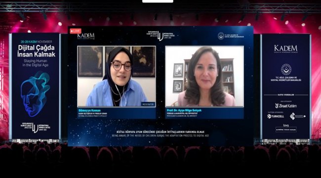 Günün ilk konuşmasını yapan ve dijital dünyaya uyum sürecinde çocuğun ihtiyaçlarının nasıl değiştiğini anlatan Koç Üniversitesi öğretim üyesi Prof. Dr. Ayşe Bilge Selçuk, çevrenin insan psikolojisindeki etkisinin altını çizdi. Çevrenin çocuğun etkileşimde olduğu her şey olduğunu aktaran Selçuk, kulaklık takıp internete sürekli bağlı yaşayan çocukların yaşam alanının ebeveynleri, kardeşleri, mahallesi, okulu olmadığını anlattı.