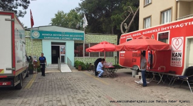 MANİSA Büyükşehir Belediyesi’ne bağlı olarak Saruhanlı’da görev yapan belediye personeli anlamlı bir etkinliğe imza attı. Belediye personeli Büyükşehir Belediyesi’nin Saruhanlıdaki Hizmet Binası önünde kurulan istasyonda kan bağışı yapmak için adeta seferber oldu.