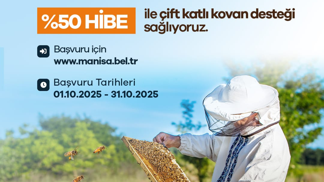 “Arıcıya Güç, Üretime Destek” projesi kapsamında üreticilere çift katlı kovan desteği verilecek. Başvurular 1–31 Ekim tarihlerinde belediyenin resmi sitesinden yapılabilecek.