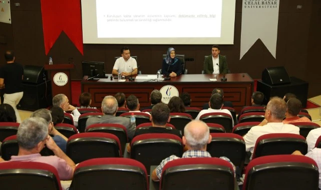 Manisa Celal Bayar Üniversitesi’nde ‘Kalite Güvence Sistemi’ çalışmaları çerçevesinde “TSE EN ISO 9001 KYS Temel Eğitimi, Risk Tabanlı Proses Yönetimi Eğitimi ve İç Tetkik Eğitimi” düzenleniyor.