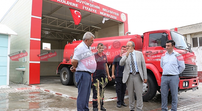 Manisa Büyükşehir Belediyesi, olası yangınlara daha hızlı müdahale edebilmek amacıyla stratejik noktalara konuşlandırdığı itfaiye müfrezeleri ile hizmet veriyor. Saruhanlı ilçesi Koldere İtfaiye Müfrezesi de bölge açısından büyük önem taşıyor. Manisa Büyükşehir Belediyesi Genel Sekreter Yardımcısı Mustafa Genç, bir dizi temaslar için bulunduğu Saruhanlı'da, Koldere İtfaiye Müfrezesini ziyaret etti. Genç'e ziyaret sırasında Yazı İşleri ve Kararlar Daire Başkanı Mustafa Ali Algın, Sağlık İşleri Daire Başkanı Talip Akbaş, İtfaiye Dairesi Eğitim Şube Müdürü Mehmet Kaleli de eşlik etti. Personelle selamlaşan Genç ve heyeti, çalışmalar hakkında personelden bilgiler aldı. İnceleme sonrası açıklamalarda bulunan Manisa Büyükşehir Belediyesi Genel Sekreter Yardımcısı Mustafa Genç, "Manisa Büyükşehir Belediye Başkanımız Cengiz Ergün'ün talimatlarıyla il genelinde 55 adet itfaiye müfrezemizle hizmet veriyoruz. İtfaiye müfrezesi konusunda Türkiye'de öncü illerden birisiyiz. Koldere Mahallesi'nin 2017 hizmetlerimizden bir tanesi de Ocak ayında açılışı yapılan itfaiye müfrezemiz. Koldere ve civar mahallelere, itfaiye aracımız ve personellerimizle hizmet verilmekte. Allah bir kaza bela vermesin, ama olduğunda müdahale edecek ekibimiz hazır" diye konuştu.