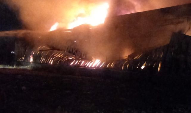 Bu kez yanan bir kauçuk paspas üretimi gerçekleştirilen bir fabrika