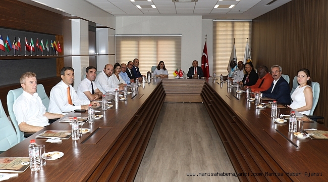 Kamerun Tarım, Balıkçılık ve Ormanlar Odası Başkanı Moussa KOUE, Başkan Yardımcıları Dr. Dewa Mohamadou, Abdul Rahim Elissar veJean Christin Tene, Manisa programı çerçevesinde Manisa Ticaret ve Sanayi Odası’nı da ziyaret etti. Manisa Ticaret ve Sanayi Odası Yönetim Kurulu Başkanı Mehmet Yılmaz, Yönetim Kurulu Üyeleri Mehmet Ali Altınkuş, Tevfik Aslaner ve Meclis Üyesi Gültekin Aşçı ile bir araya gelen Kamerun delegasyonu, Manisa’nın ekonomisi ve yatırım fırsatları hakkında bilgi sahibi oldu.