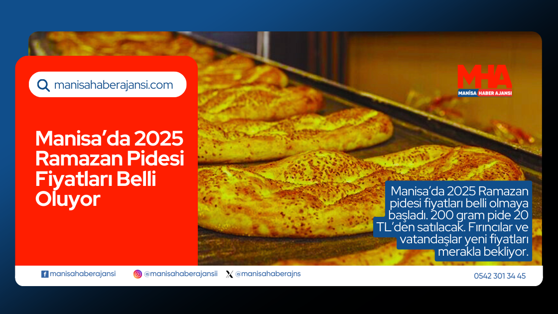Manisa’da 200 gram Ramazan pidesinin 20 TL’den satılacağı ifade ediliyor. 2024 yılında 250 gram pide 15 TL, 340 gram pide ise 20 TL’den satılmıştı.
