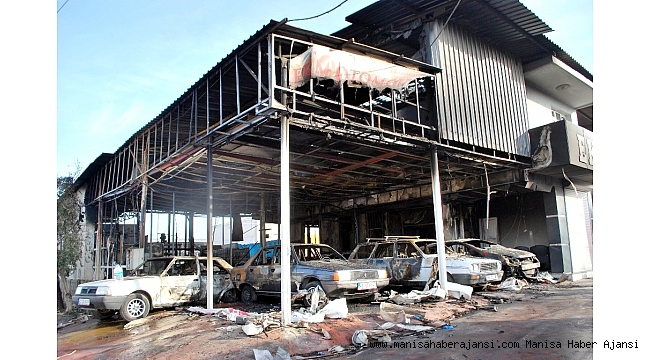 Manisa'nın Salihli ilçesinde çıkan yangında 2 iş yeri ile 5 araç küle döndü.Yangın Manisa'nın Salihli ilçesine bağlı Gaziler Mahallesinde bulunan Galericiler Sitesinde meydana...