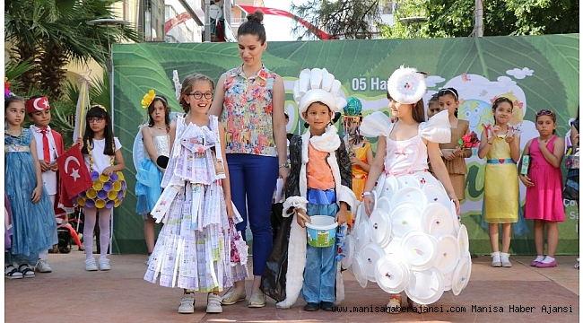 Manisa Büyükşehir Belediyesi Çocuk Kültür ve Sanat Merkezi öğrencileri, Çevre Günü etkinliklerini güzel bir finalle noktaladı. 'Tak Takıştır Geri Dönüştür' adıyla Tarzan Meydanı'nda etkinlik düzenleyen minikler, geri dönüşüm malzemelerinden oluşturulan elbiseleriyle jüriden tam puan aldı. Defileden sonra minikler, koro halinde çocuk ve çevre konulu şarkıları seslendirdiler. Defileye Manisa Büyükşehir Belediyesi Kültür ve Sosyal İşler Dairesi Başkanı Ergün Aksoy ile Çevre Koruma ve Kontrol Dairesi Başkanı Ertuğrul Yıldırım da katıldı. Defilede seçilen ilk üç miniğe hediyeleri takdim edildi ve defileye katılan tüm miniklere Çocuk Kültür ve Sanat Merkezi'nde yaz kursu hediye edildi.