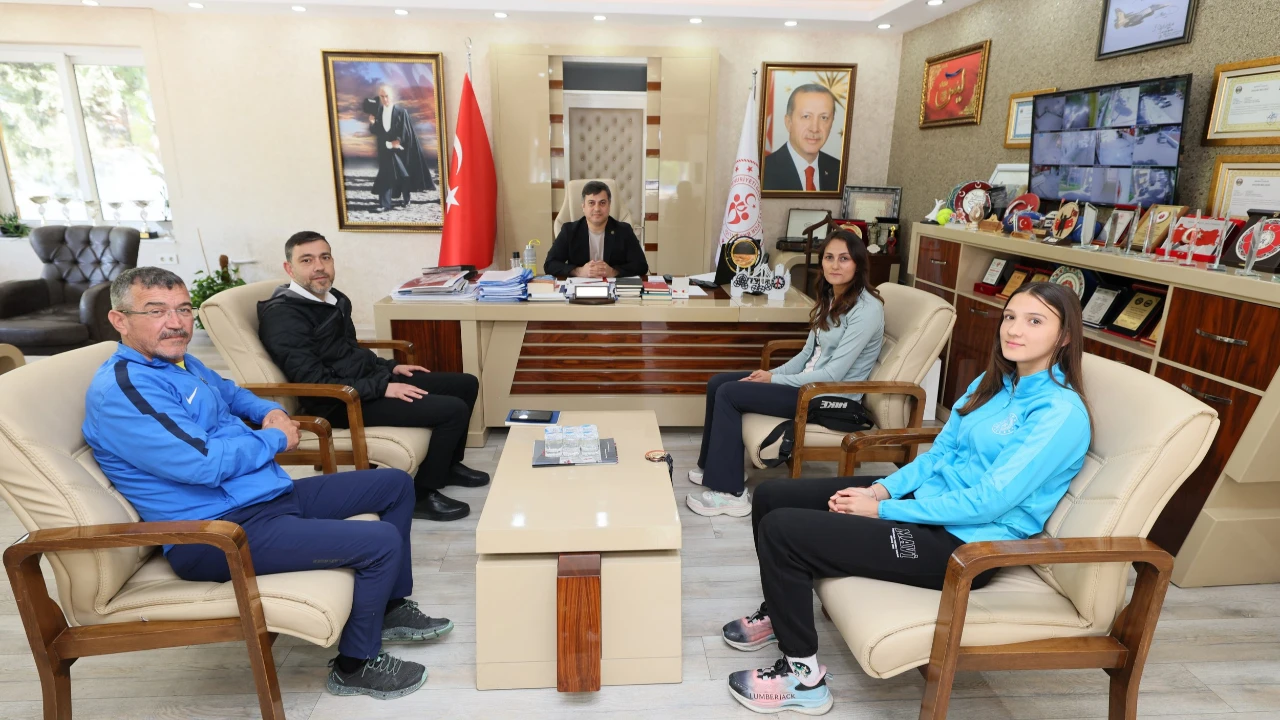 U16 Türkiye Atletizm Şampiyonası’nda altın madalya kazanan Eylül Aygül, İl Müdürü Yunus Öztürk tarafından makamında ağırlanarak ödüllendirildi.