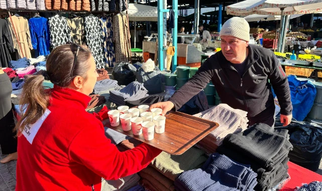 Türk Kızılay Manisa İl Merkezi Başkanlığı ekipleri, esnaf ve vatandaşlara mesir macunlu süt ikram etti.