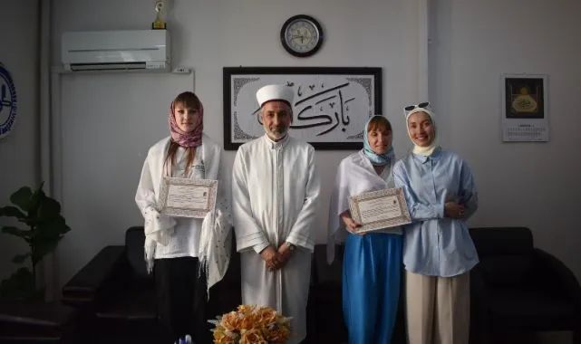 Kur’an-ı Kerim tilaveti ile başlayan merasimde İlçe Müftüsü M. Nedim Bakır, Natalııa ve Kızı Yulııa’ya İslam dininin inanç, ibadet ve ahlak esaslarına dair temel bilgiler verdi.