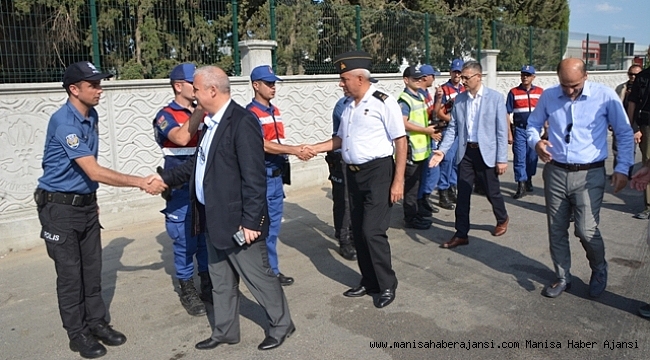 Manisa Valisi Mustafa Hakan Güvençer’in denetleme ve kutlama ziyaretine, İl Jandarma Komutanı Tuğgeneral Erhan Can, İl Emniyet Müdürü Fevzi Bilgiç ile ilçelerinde Alaşehir Kaymakamı Abdullah Uçgun, Turgutlu Kaymakamı Uğur Turan, Salihli Kaymakamı Turgut Çelenkoğlu, Gölmarmara Kaymakamı Hüseyin Karameşe ve Akhisar Kaymakamı Kaan Peker eşlik etti.