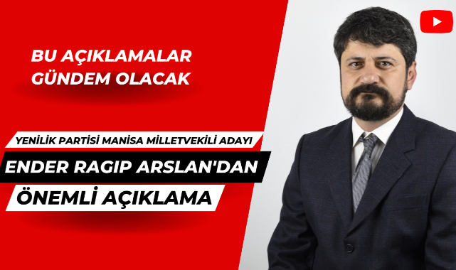Manisa'da Jeoloji Mühendisi olan aynı zamanda Yenilik Partisi (YP) Manisa 1.Sıra Milletvekili Adayı Ender Ragıp Arslan, mevcut hükümetin ve küreselcilerin planları üzerine yaptığı açıklamalarla dikkat çekiyor.