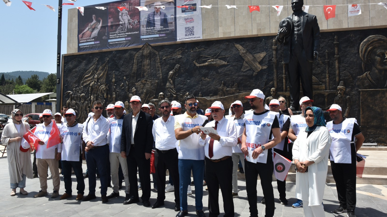 Yunusemre Belediyesi Meydanı Atatürk Anıtı önünde yapılan basın açıklamasına, Hak-İş/Hizmet-İş Sendikası Genel Başkan Danışmanı Mustafa Taştekin, Özpetrol-İş-Sen Genel Başkan Yardımcısı Hasan Gürcan, Özçelik-İş Ege Bölge Başkanı Erdoğan Daloğlu, Memur-Sen Manisa İl Başkanı Ahmet Yasav, Özsağlık-İş Manisa Şube Başkanı İkram Çiçek, Hizmet-İş Manisa 2 No'lu Şube Başkanı Tekin Turgut ve Hak-İş Manisa İl Başkanı Okan Polat katıldı.