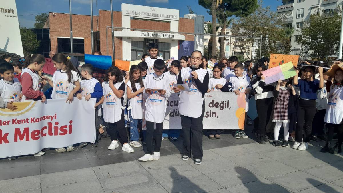 Çocuk Meclisi Başkanı Zeynep Türkyılmaz ve Başkan Yardımcısı İsmail Adıgüzel yaptıkları ortak açıklamada, dünya genelinde çocukların karşı karşıya bırakıldığı sorunlara dikkat çekti. Çocukların savaş, yoksulluk, ihmal ve istismar gibi ağır koşulların en büyük mağdurları olduğuna işaret eden Meclis temsilcileri, tüm çocuklar adına eşit hak talep ettiklerini ifade etti.
