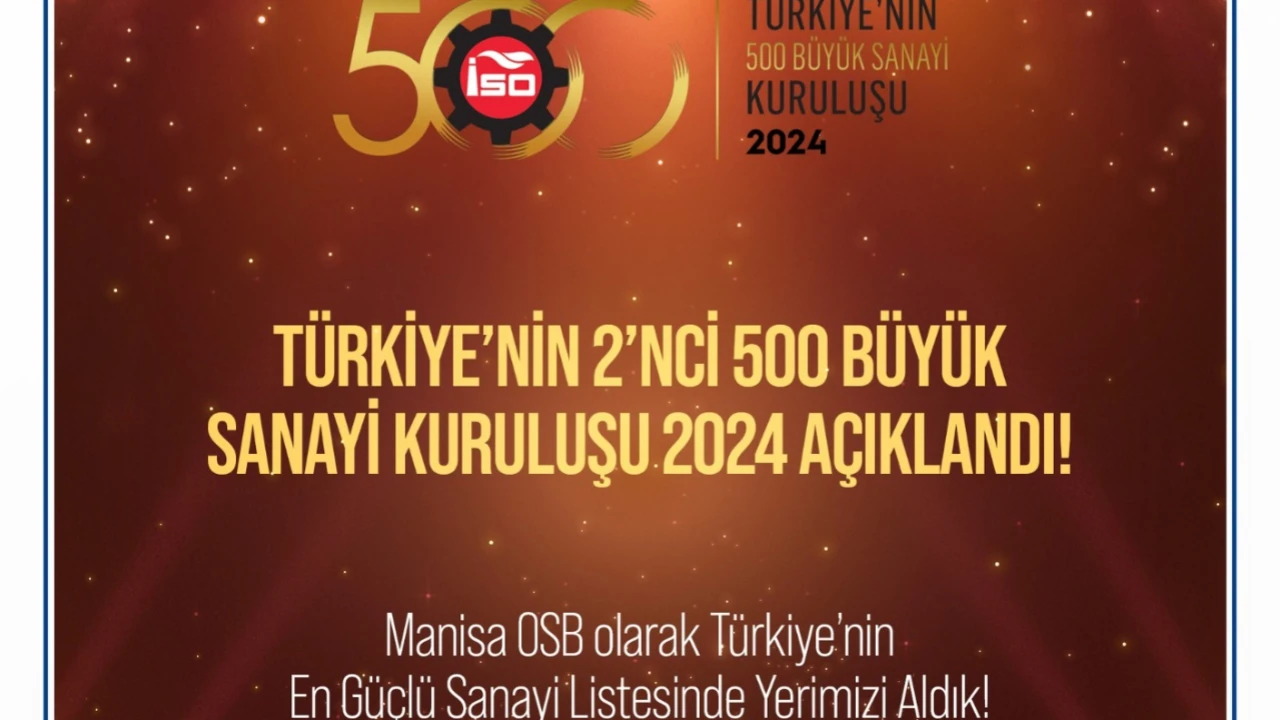İSO’nun 2024 yılı İkinci 500 Büyük Sanayi Kuruluşu listesine Manisa OSB’den 10 firma girdi. İlk 500 listesinde yer alan 20 firmayla birlikte toplam sayı 30 oldu.