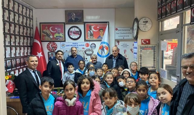Manisa Şehit Aileleri Ve Gaziler Derneği Manisa'da öğrenciler ile buluşmaya devam ediyor. Manisa Şehit Aileleri Ve Gaziler Derneği Başkanı Adnan Kaya ve yönetim kurulu üyeleri öğrencilere şehitlik ve gazilik kavramı üzerine bilgiler verdiler. Manisa Şehit Aileleri Ve Gaziler Derneği Başkanı Adnan Kaya yaptığı açıklamada dernek olarak şehit aileleri ve gazilerimiz için çalışırken diğer taraftan bizlere talep geldiği sürece öğrencilerimiz Bayrak, vatan, şehit ve gazilik üzerine söyleyişi gerçekleştiriyoruz. Bugünde Cemal Ergün İlkokulu 3/B sınıfı öğrencileri derneğimizde bizleri ziyaret ettiler. Öğrencilerimizin bizlere sorular yönlendirdi. Bizlerde sorulara cevaplar verdik. Öğrencilerimiz derneğimizden mutlu ayrıldılar" dedi.