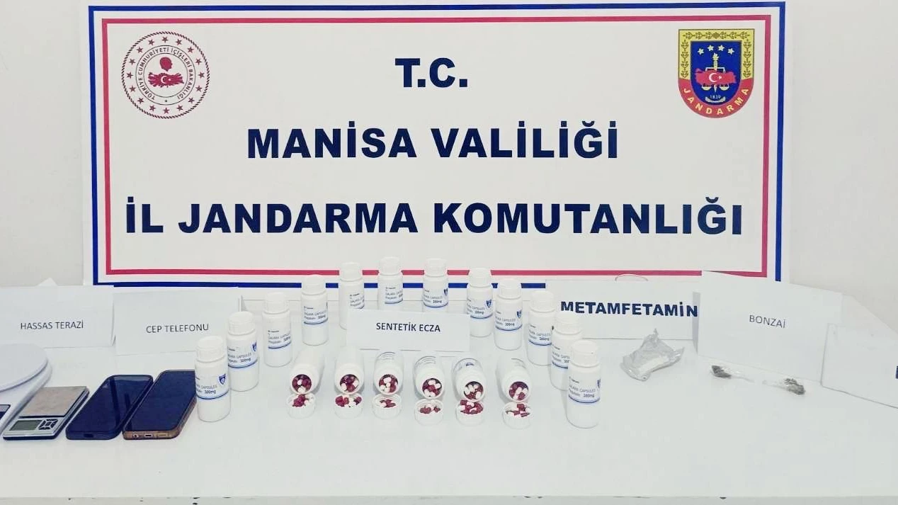 Manisa İl Jandarma Komutanlığı, uyuşturucu ile mücadele kapsamında gerçekleştirdiği çalışmalar sonucunda sentetik ecza ve çeşitli uyuşturucu maddeler ele geçirdi.