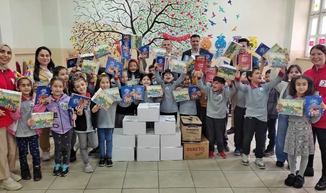Türk Kızılay Manisa Şube ekipleri de öğrencilere, hikâye kitabı, rozet ve yapboz hediye etti.