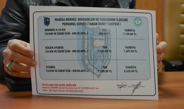 Manisa Şoförler ve Otomobilciler Esnaf Odası, Manisa Merkez’de Şehzadeler ve Yunusemre ilçelerinde personel servisi taban ücret tarifesini belirledi.