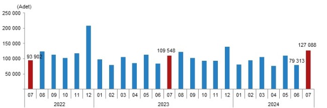 Türkiye genelinde konut satışları Temmuz ayında bir önceki yılın aynı ayına göre %16,0 artarak 127 bin 88 oldu. Konut satış sayısının en fazla olduğu iller sırasıyla 19 bin 47 ile İstanbul, 11 bin 364 ile Ankara ve 6 bin 659 ile Antalya olurken, en az olduğu iller sırasıyla 61 ile Ardahan, 64 ile Hakkari ve 77 ile Bayburt oldu.