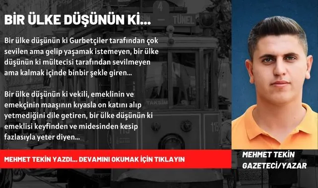 Bir ülke düşünün ki vekili, emeklinin ve emekçinin maaşının kıyasla on katını alıp yetmediğini dile getiren, bir ülke düşünün ki emeklisi keyfinden ve midesinden kesip fazlasıyla yeter diyen..